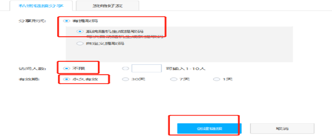 (4)选择“永久有效”点击创建链接。
