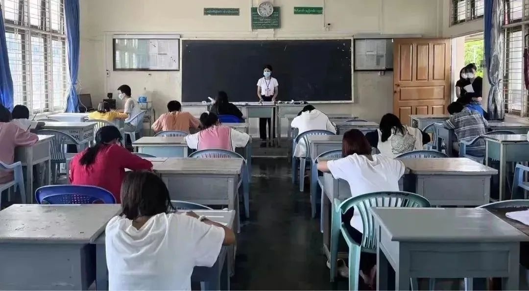 在缅甸曼德勒福庆学校考点,HSK考试在线下开考。此次考试共有2000余名考生参加,是新冠疫情后参加考试人数最多的一次。
