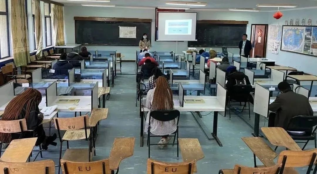 在肯尼亚埃格顿大学考点,考试当天,各位监考老师仔细核对考生信息,组织考生有序入场,认真履行监考职责;考点负责人巡查各级别考场,严格考场纪律。考试结束,监考老师仔细回收、整理考试材料,并组织考生有序离场。整场考试严格规范、秩序井然。